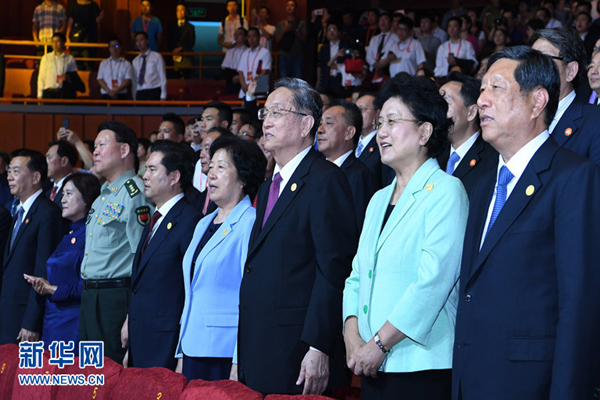 赞歌飞扬,信心满怀。晚会在朗诵和歌舞《这是我的家乡》中拉开序幕。整场晚会分“旭日东升”“亮丽北疆”“守望相助”三个篇章,热情讴歌自治区70年繁荣发展的辉煌成就,充分展示党的民族区域自治制度在内蒙古的成功实践,表达出各族儿女紧密团结在以习近平同志为核心的党中央周围,建设亮丽内蒙古、共圆伟大中国梦的共同心愿。 伴着“草原上升起不落的太阳”的动人旋律,晚会进入第一篇章“旭日东升”。情景诗画《草原曙光》、舞蹈与队列《骑兵》、歌舞《从草原来到天安门广场》《乌兰牧骑》等,让人们的思绪回到那个火红的年代。 改革春风吹绿千里草原,舞蹈《马背交响》开启第二篇章“亮丽北疆”。歌曲联唱《美丽的草原我的家》、好来宝《幸福生活赛拜努》、戏曲联唱《春花烂漫》等,描绘出各族群众在党的领导下,生活一年更比一年好的幸福与奋进场景。 第三篇章“守望相助”中,歌舞《美好家园》、情景合唱《守望相助》、马头琴与交响乐《万马奔腾》等,展现了党的十八大以来,在以习近平同志为核心的党中央坚强领导和亲切关怀下,内蒙古各族干部群众行进在新的历史征程中的激情与豪迈。一曲《永远的赞歌》,唱出了各族儿女矢志不渝跟党走的信念与心声。 晚会在全场大合唱《歌唱祖国》中圆满落幕。 中央代表团副团长刘延东、孙春兰、张平、王正伟、张阳和代表团全体成员一同观看演出。 自治区党委书记、人大常委会主任李纪恒,自治区党委副书记、自治区主席布小林等观看演出。 |