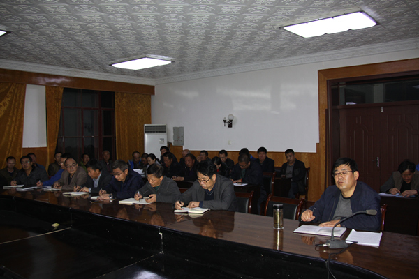 1116晚,集团公司党委书记张建国以“学习贯彻党的十九大精神”为题给公司党员上党课。公司党政班子成员、各单位党员、班组长50余人聆听了党课。