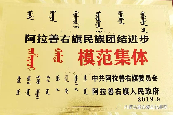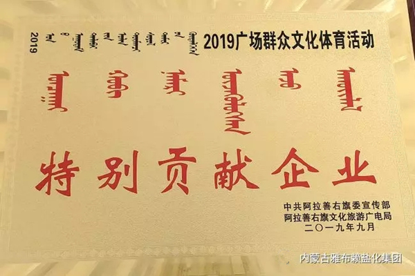 在喜迎新中国70华诞之际,雅盐化集团公司也是喜事连连,先后荣获“阿拉善右旗民族团结进步模范集体”,在阿右旗庆祝中华人民共和国成立70周年暨2019.国际巴丹吉林沙漠文化旅游节(那达慕大会)开幕式上受到隆重表彰。同时在2019年阿右旗庆祝新中国成立70周年2019年广场群众文化体育活动中表现突出,被授予“2019年支持广场群众文化体育活动特别贡献企业”;公司选送的工人舞蹈《咱们工人有力量》获得2019年广场群众文化体育活动精品节目,分别受到旗委宣传部和旗文化旅游广电局的表彰。