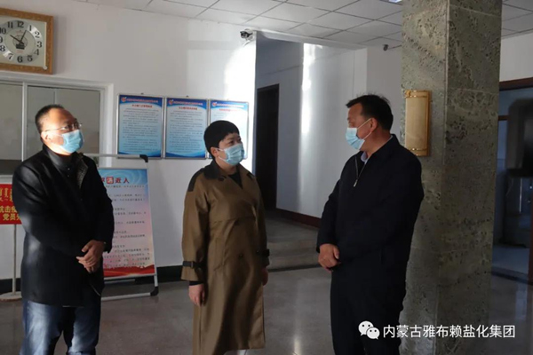 1月15日,在新春佳节来临之际,旗委副书记、旗长姜冰洁率队到雅盐化集团公司走访慰问,代表旗委、政府感谢雅盐对阿右旗经济社会高质量发展作出的积极贡献。集团公司党委副书记、总经理李奎锦,副经理徐宪国、工会主席张菊萍陪同慰问。