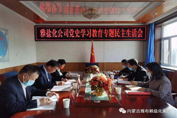 1月23日上午,雅盐化集团公司党委召开党史学习教育专题民主生活会。旗委党史学习教育第三巡回指导组组长赵保卫、旗纪委监委驻旗政府办纪检监察组组长靳玉红同志到会指导。公司党委领导班子成员参加会议,集团公司党委副书记、总经理李奎锦主持会议。