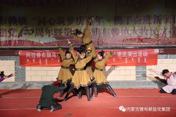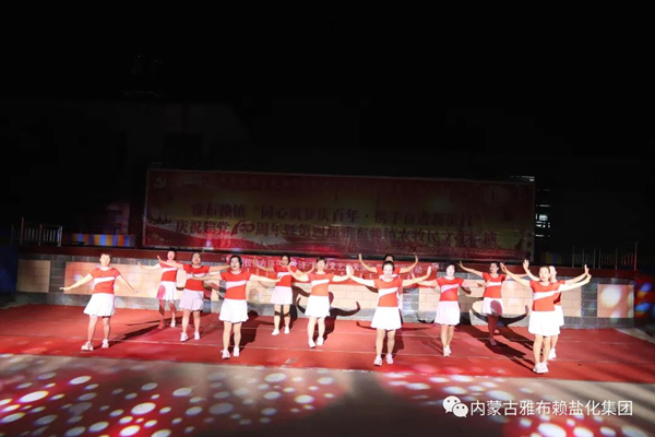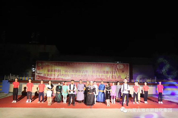 7月8日晚,阿右旗乌兰牧骑走进雅盐化集团公司,与企业联合举办消夏暨庆祝雅盐建场80周年文艺晚会。