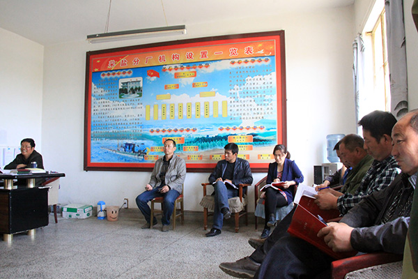 采盐分厂支部书记聂振军(左一)主持会议
